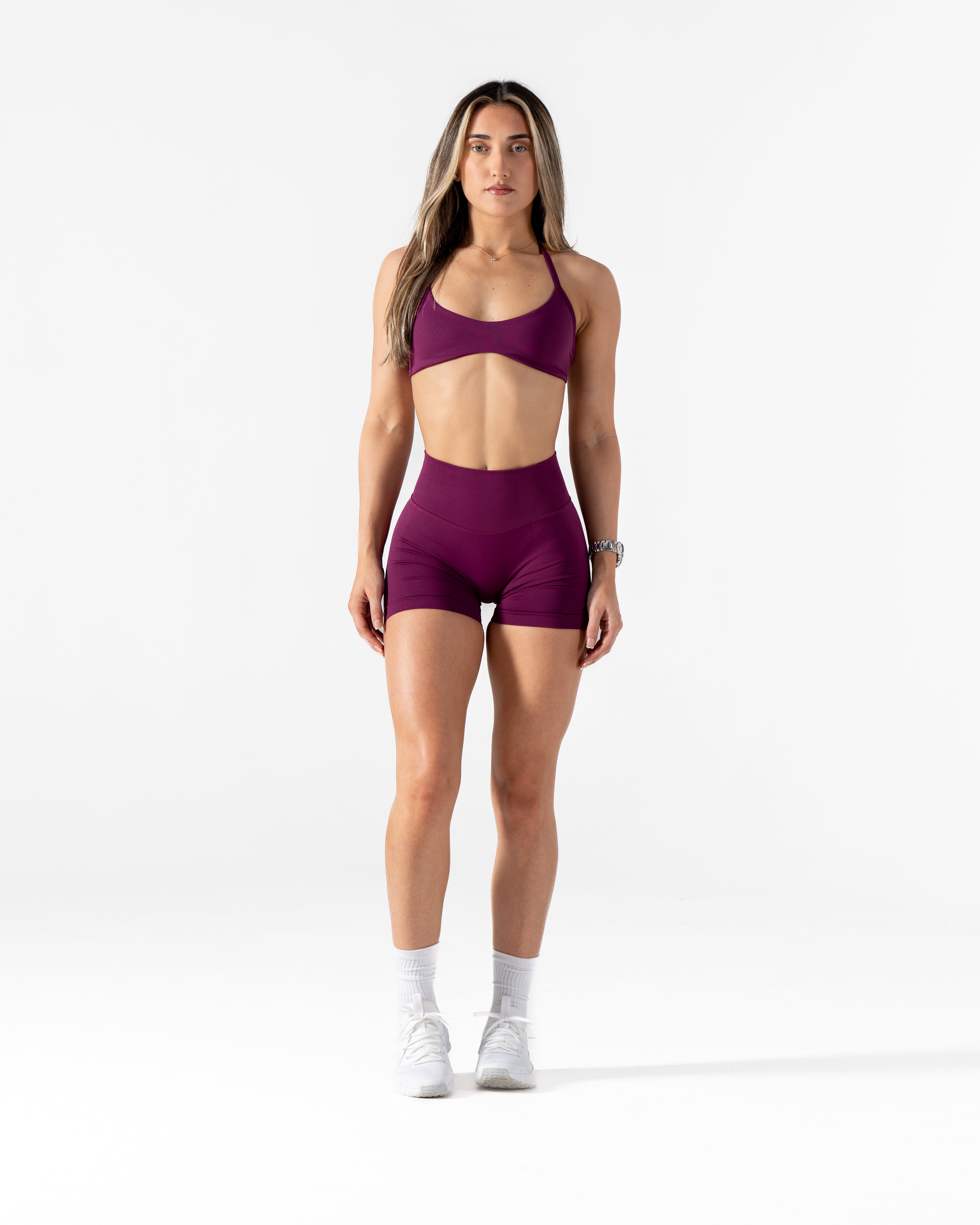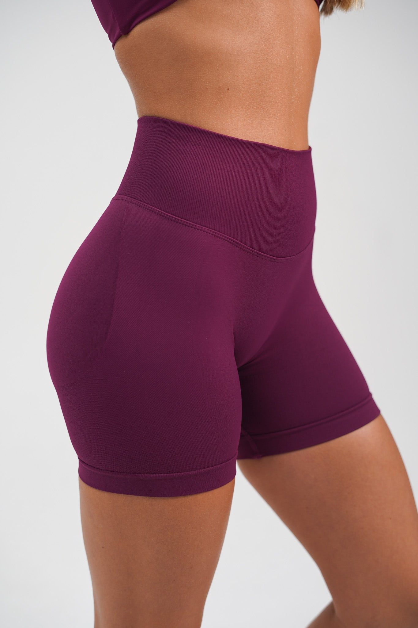 RECOIL HIGH WAISTED SCRUNCH SHORTS - BERRY