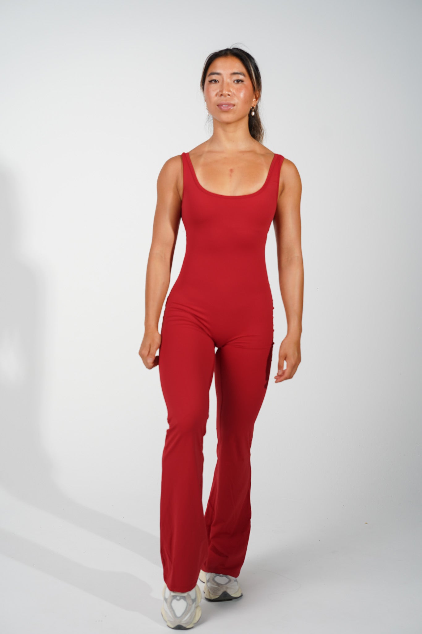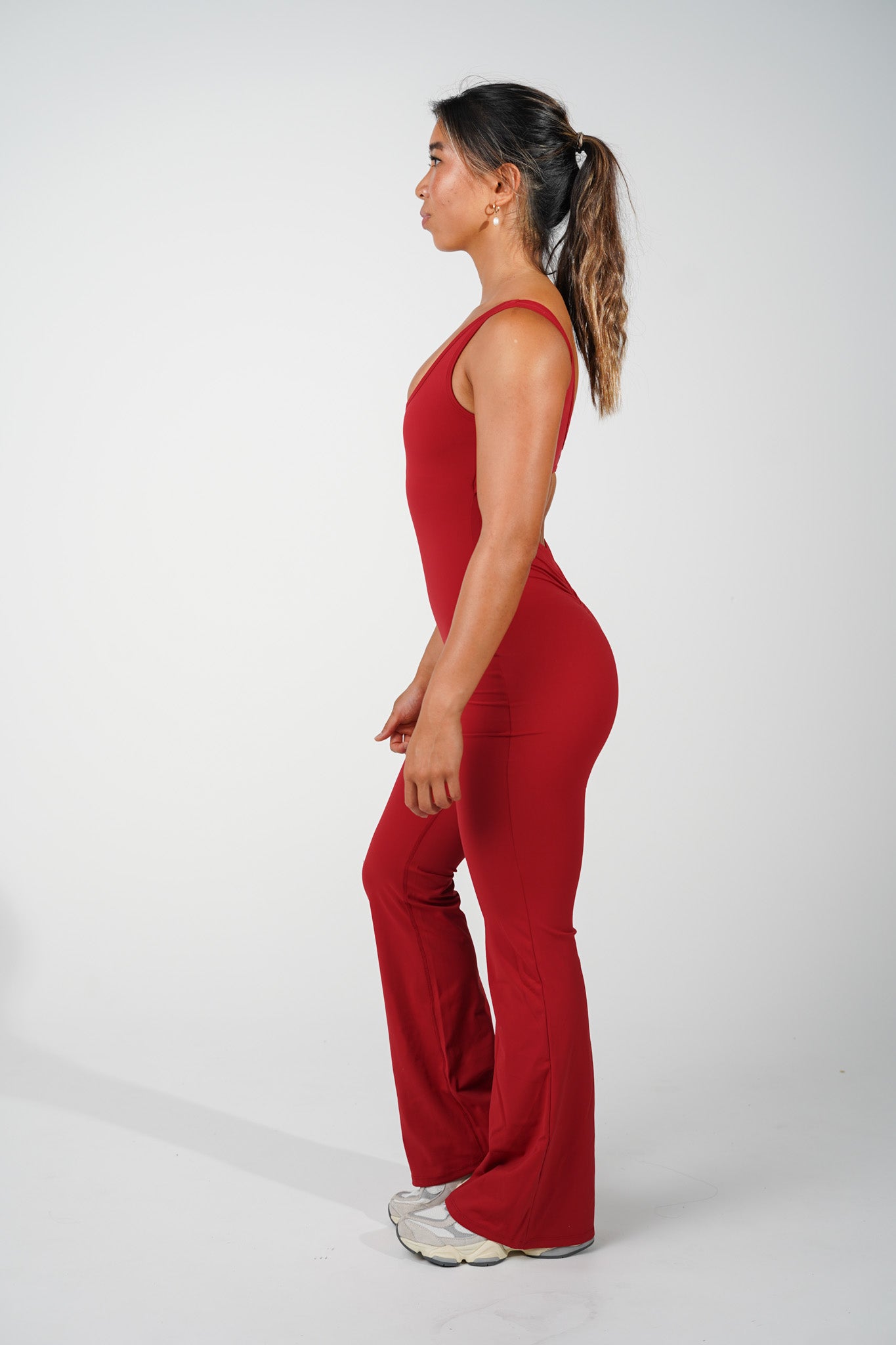 AMORA FLARED JUMPSUIT - DARK RED